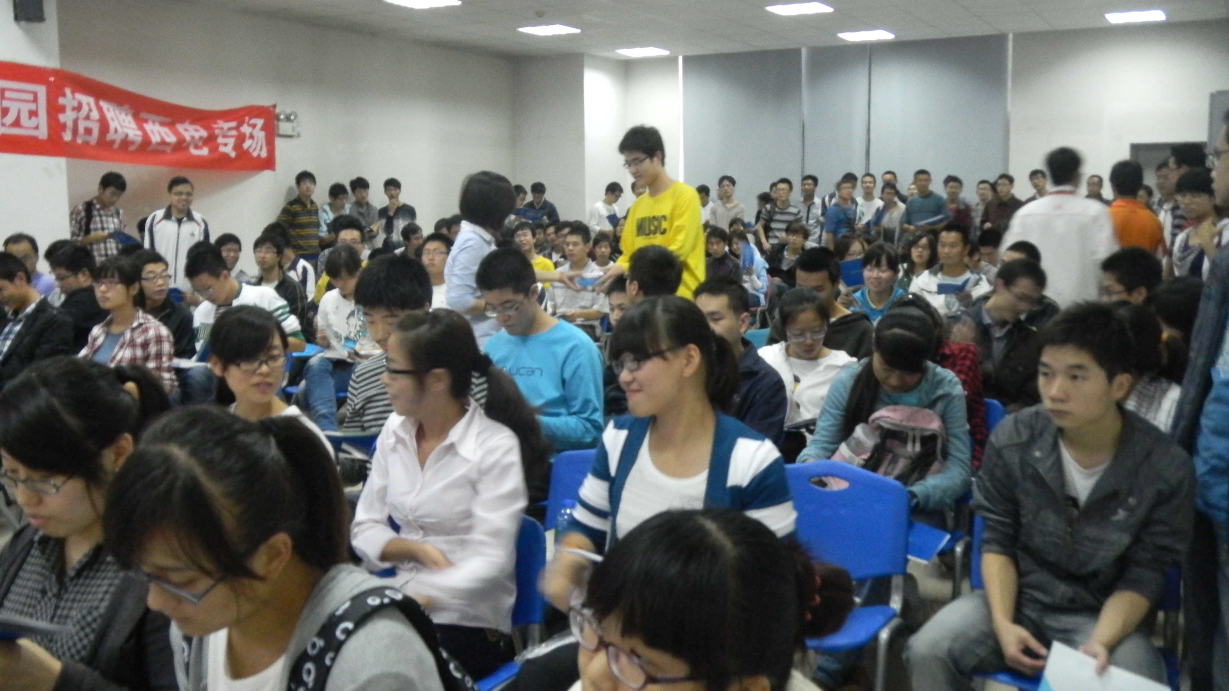 宣讲会现场挤满前来听讲的同学