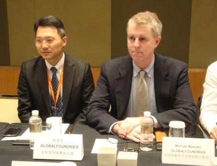 GLOBALFOUNDRIES大中华区销售副总裁陈若中(左)与全球销售和市场营销执行副总裁Michael Noonen(右)答记者问