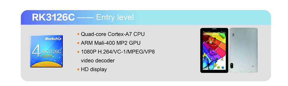 此外,入门级主流方案RK3126C,在上一代的Android Go系统中有稳定的性能表现,超过百家OEM量产搭载RK3126C的入门平板。