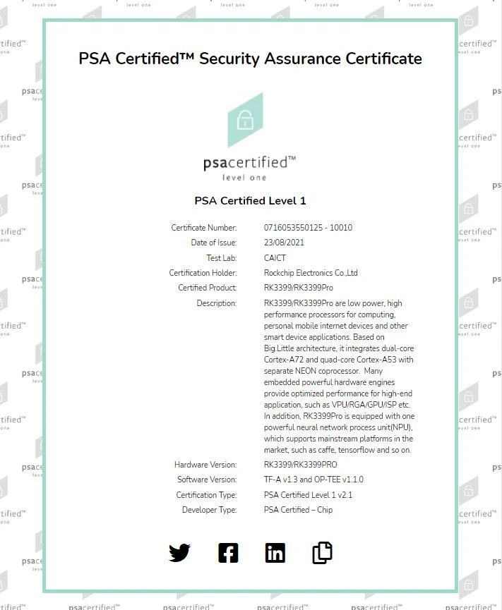 RK3399Pro及RK3399通过Arm平台安全架构PSA认证