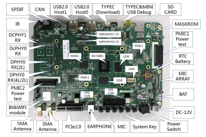 RK3588 EVB配备的丰富外设接口(如图),适用于各类行业AIoT终端设备。